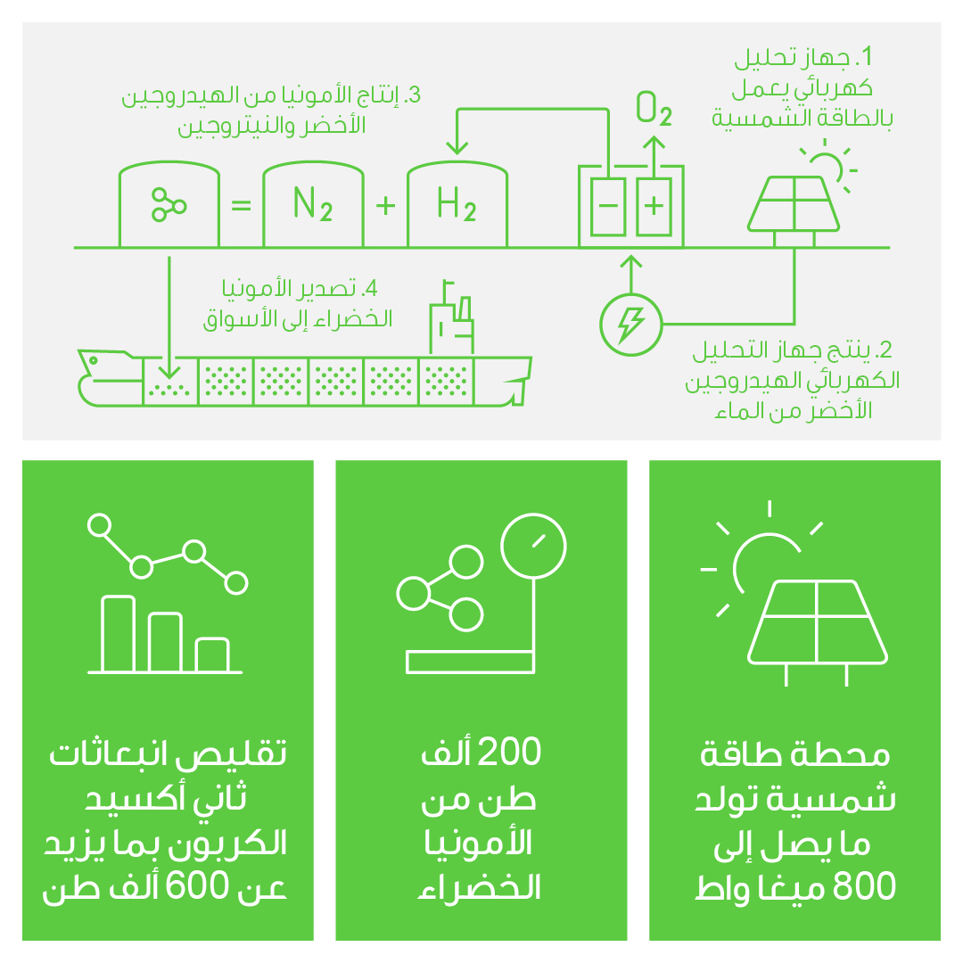 أعلنت هيليوس للصناعة، وهي شركة مشاريع خاصة مملوكة من قبل القطاع الخاص، عن خططها لاستثمار أكثر من 3.67 مليار درهم إماراتي (أي ما يعادل مليار دولار أمريكي) في تأسيس مصنع لإنتاج الأمونيا الخضراء في كيزاد بهدف إنتاج حوالي 200 ألف طن من الأمونيا الخضراء باستخدام 40 ألف طن من الهيدروجين الأخضر، لتكون بذلك المنشأة الأولى من نوعها في الإمارة والتي تقوم بإنتاج الأمونيا الخضراء باستخدام مصادر طاقة متجددة.